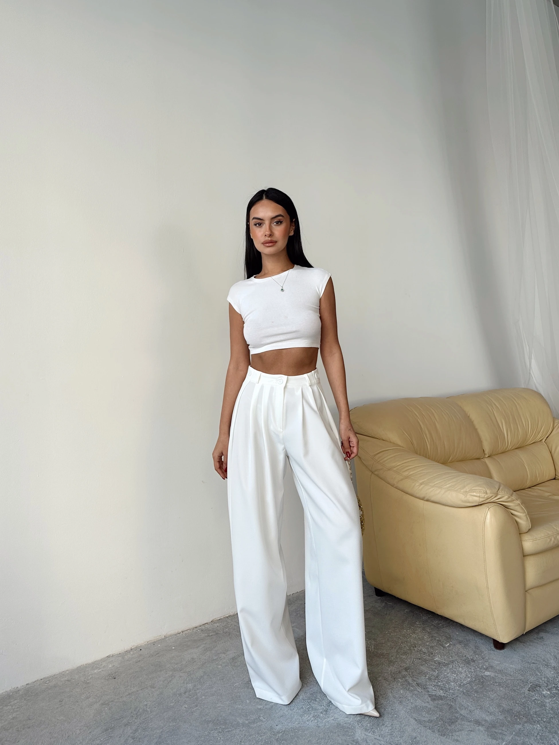 Yandan Katlama Düğme Detay Palazzo - Beyaz (MYD7460_Beyaz)