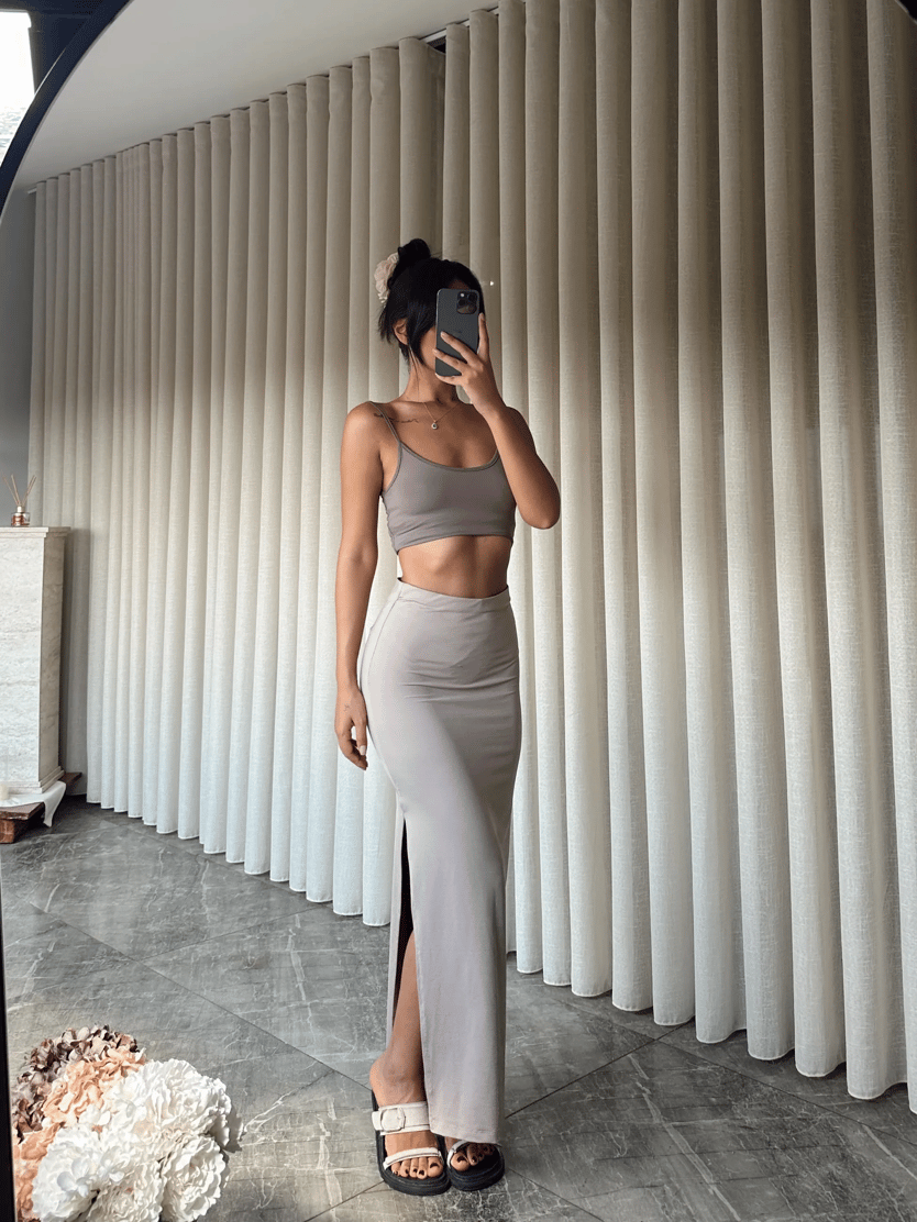 Yanı Yırtmaçlı Etek - Vizon (MD3971_Vizon)