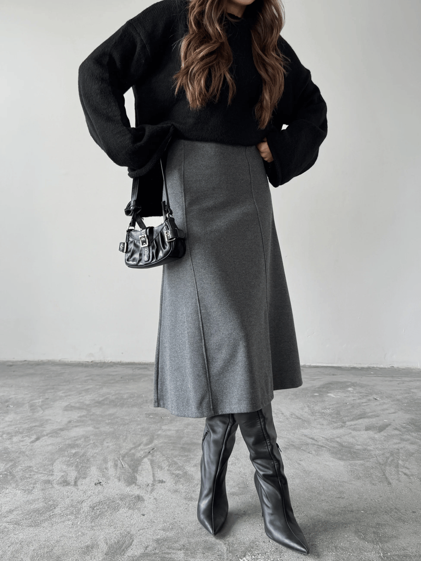 Yanları Çımalı Midi Etek - Antrasit (MD4287_Antrasit)