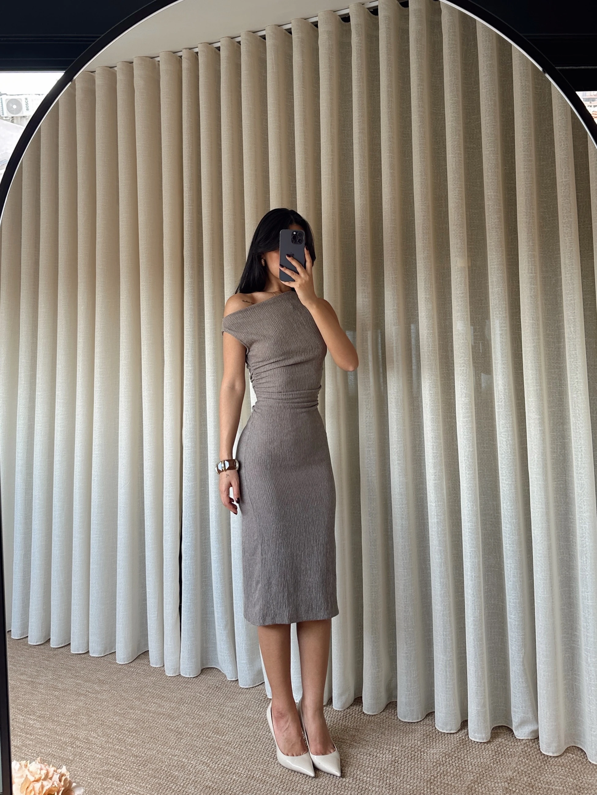 Yanları Drapeli Sıfır Kol Elbise - Antrasit Yanları Drapeli Sıfır Kol Elbise - Haki