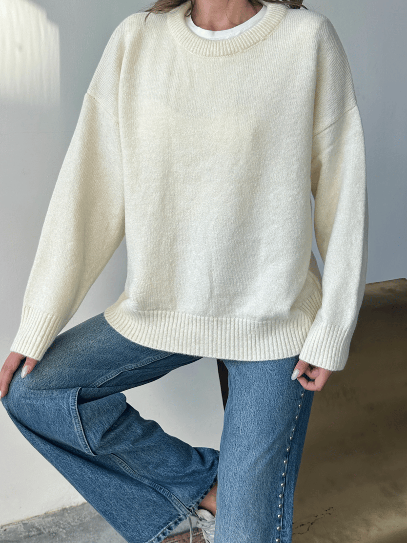 Yıkamalı Şardonlu Triko Kazak - Ekru (MYD8100_Ekru)
