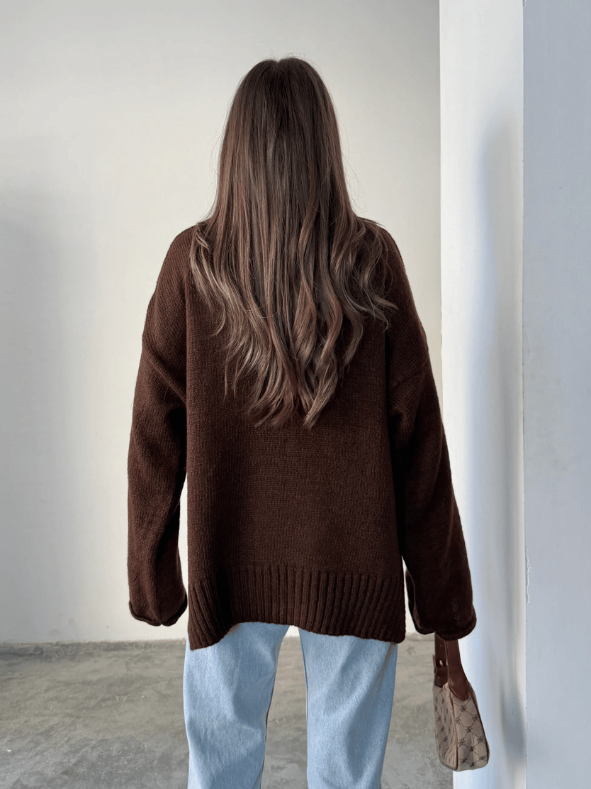 Yırtmaçlı Basic Triko - Acı kahve (MYD8112_Acı kahve)